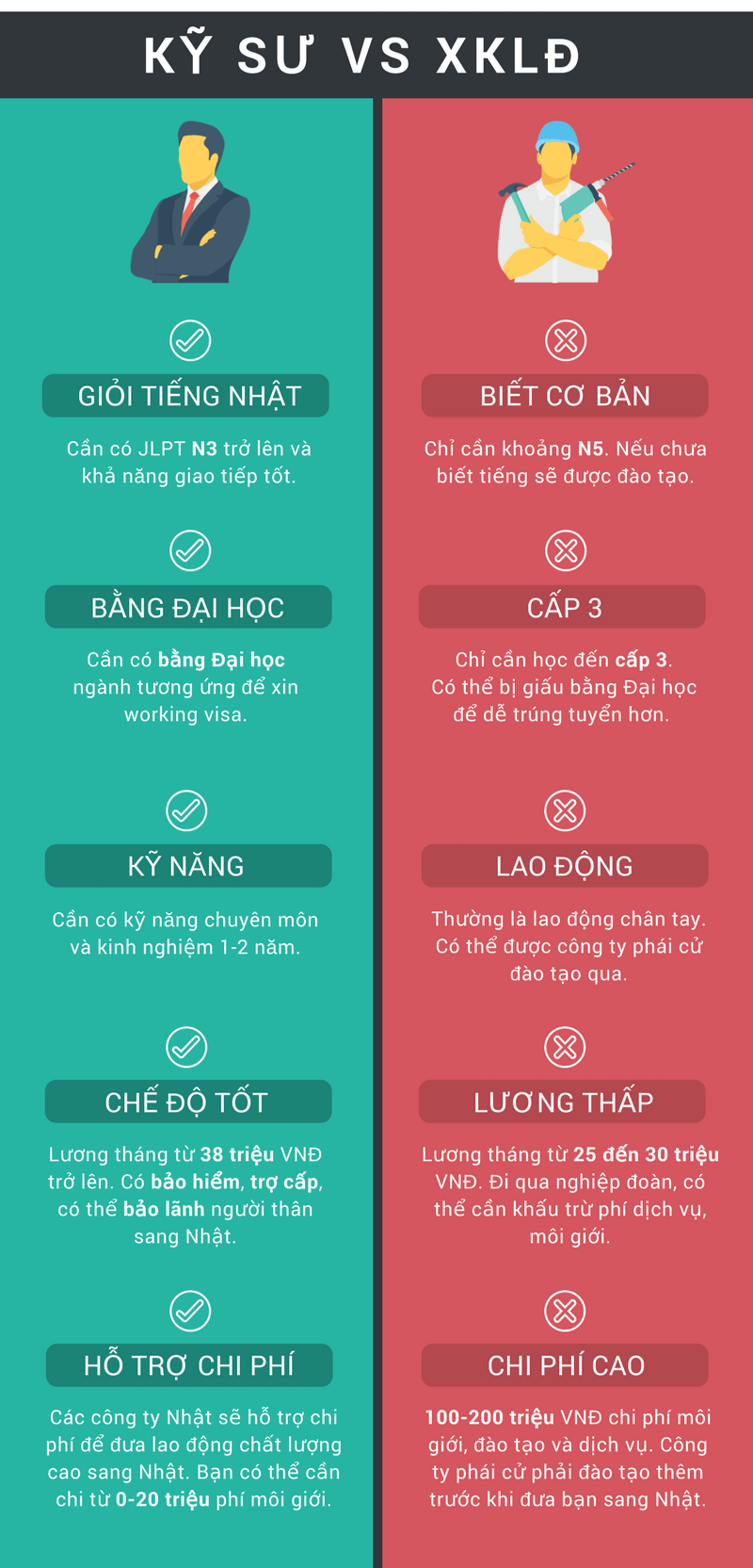 7. So sánh giữa đi kỹ sư đi Nhật Bản và đi diện Thực Tập Sinh tại Nhật
